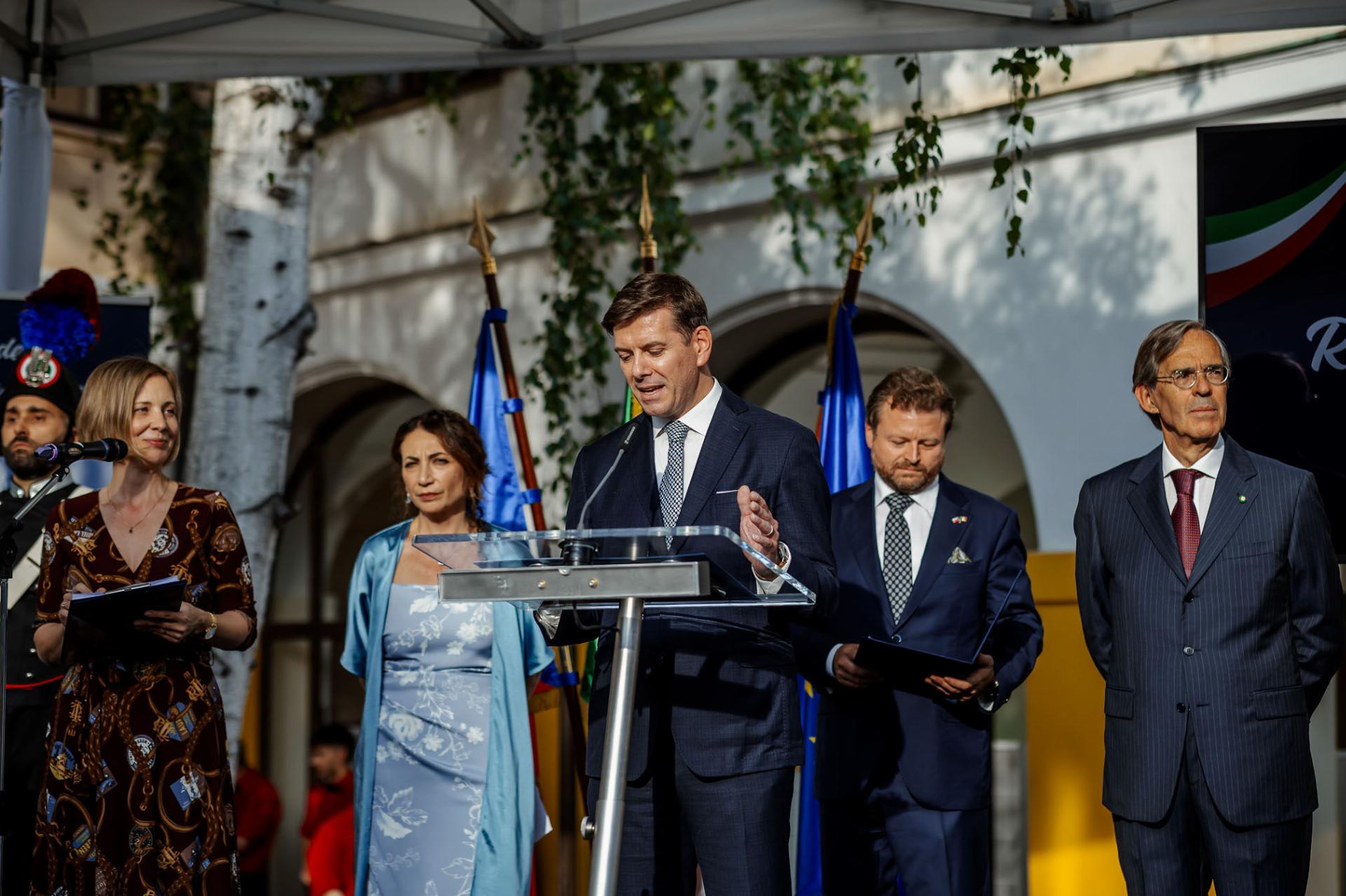 I festeggiamenti, con una affluenza di circa mille ospiti, sono stati aperti dalla banda militare del Castello di Praga che ha eseguito nel cortile dell’Istituto gli inni nazionali italiano e ceco, cui hanno fatto seguito i saluti istituzionali dell’Ambasciatore d’Italia Mauro Marsili. In rappresentanza del governo ceco hanno preso la parola il Vice Presidente della Camera dei Deputati, On. Jan Skopeček, e il Presidente del Gruppo parlamentare d’amicizia ceco-italiano, On. Vojtěch Munzar.