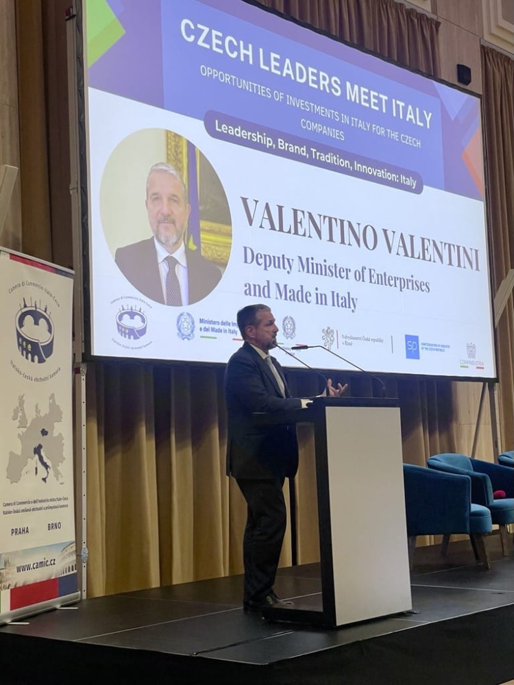 Praga, 27 febbraio 2025. Il Vice Ministro delle Imprese e del Made in Italy, Valentino Valentini, è intervenuto ieri pomeriggio a Praga, nella sede della Banca Nazionale Ceca, al forum “Czech Leaders meet Italy: Opportunities of investments in Italy for the Czech companies” organizzato dalla Camera di Commercio e dell’Industria Italo-Ceca (CAMIC) e dall’Ambasciata d’Italia a Praga, con la collaborazione del Ministero delle Imprese e del Made in Italy, dell’Ambasciata della Repubblica Ceca a Roma, di Confindustria e della Confederazione delle Industrie della Repubblica Ceca. Al centro dei lavori le opportunità di inserimento in Italia per le aziende ceche, il ruolo dei principali attori del “Sistema Paese” nell’intera filiera di orientamento e attuazione degli e la possibilità per gli operatori di confrontarsi con personalità di spicco di istituzioni e associazioni attive sull’asse Italia-Repubblica Ceca.