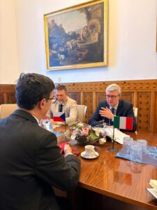 L’Ambasciatore Alessandro Gaudiano ha incontrato il primo aprile 2026 il Primo Vice Primo Ministro e Ministro dell’Industria e del Commercio Karel Havlíček. Al centro del cordialissimo colloquio il rafforzamento dell’azione comune di Italia e Repubblica Ceca in Europa e l’ulteriore consolidamento dei partenariati economici bilaterali, in particolare nei settori dell’energia, della difesa e dello spazio.